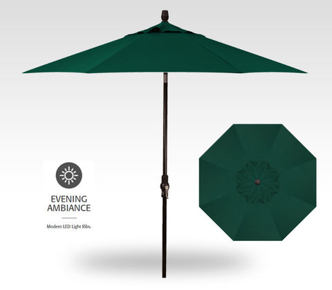 Instant shade during the day and starlight ambiance in the evening. This Starlux twist tilt umbrella has LED light stripes built into the ribs of the canopy for an elegant and modern glow. Easily adjust the umbrella with its easy-to-se twist to tilt technology. This vibrant solution-dyed acrylic canopy comes in an array of colors to suite your home and garden and includes a three year warranty on the fading. Features an easy-to-adjust crank lift along with sleep rechargeable battery pack.