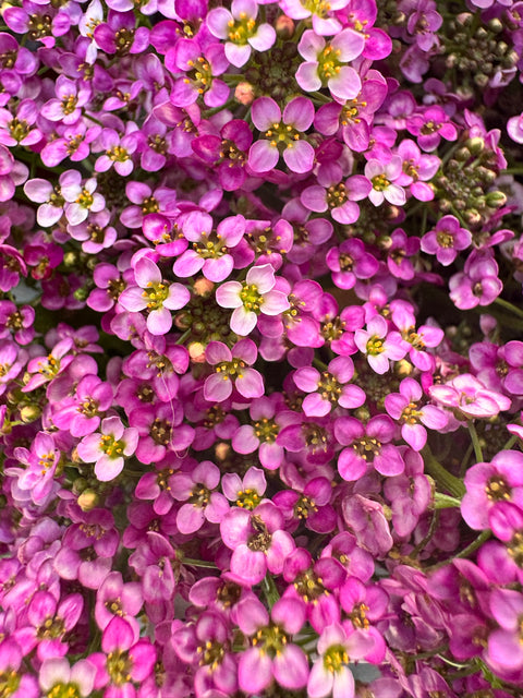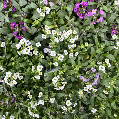 Alyssum is bathed in stunning clusters of fragrant star-shaped flowers at the ends of the stems from mid spring to mid fall. Its tiny narrow leaves remain grayish green in color throughout the season.