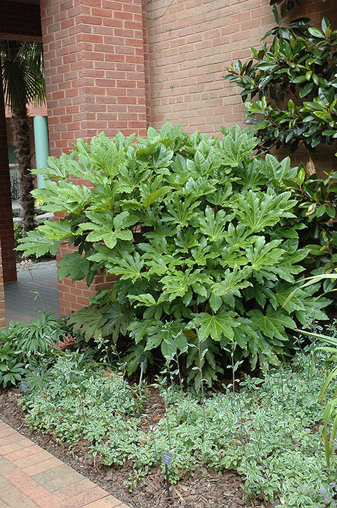 Japanese Fatsia is a multi-stemmed evergreen shrub with an upright spreading habit of growth. Its average texture blends into the landscape, but can be balanced by one or two finer or coarser trees or shrubs for an effective composition.