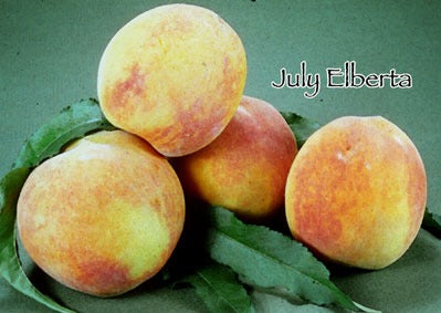 July (Kim) Elberta Peach is a deciduous fruit tree with an upright spreading habit of growth. Long valued for its productivity and versatility, this variety is a dependable choice for home orchards.