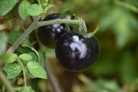 Indigo Rose Tomato is an annual vegetable plant that is commonly grown for its edible qualities. It produces small clusters of indigo round tomatoes (which are technically 'berries') with red flesh which are usually ready for picking from mid summer to early fall. This is an indeterminate variety, which means it produces fruit throughout the growing season. The tomatoes have a delicious taste and a firm texture.