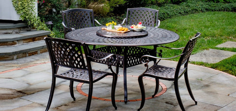 Enjoy the season al fresco in style with a dining set designed with traditional lines and classic form. Create an outdoor room that the entire family can enjoy while providing long-lasting strength and durability in all climates. 5-piece set